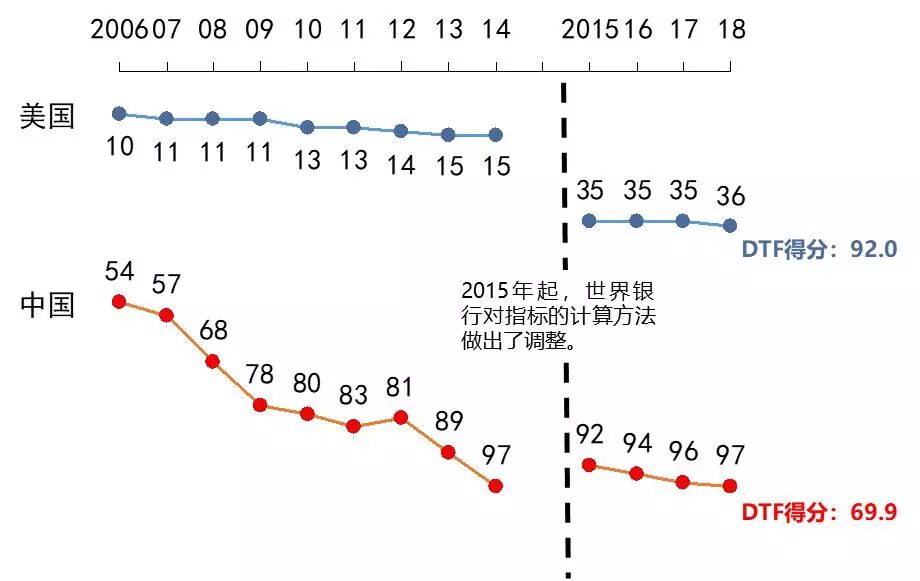 1. 全球排名:190个经济体中,美国第15,中国第97;