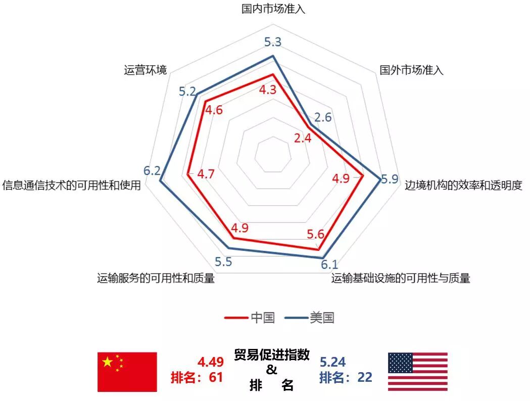 世界经济论坛《2016全球贸易促进报告》中国和美国的对比